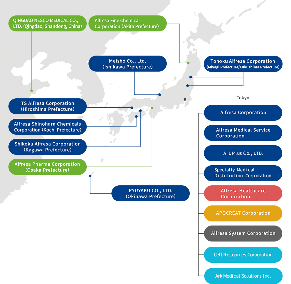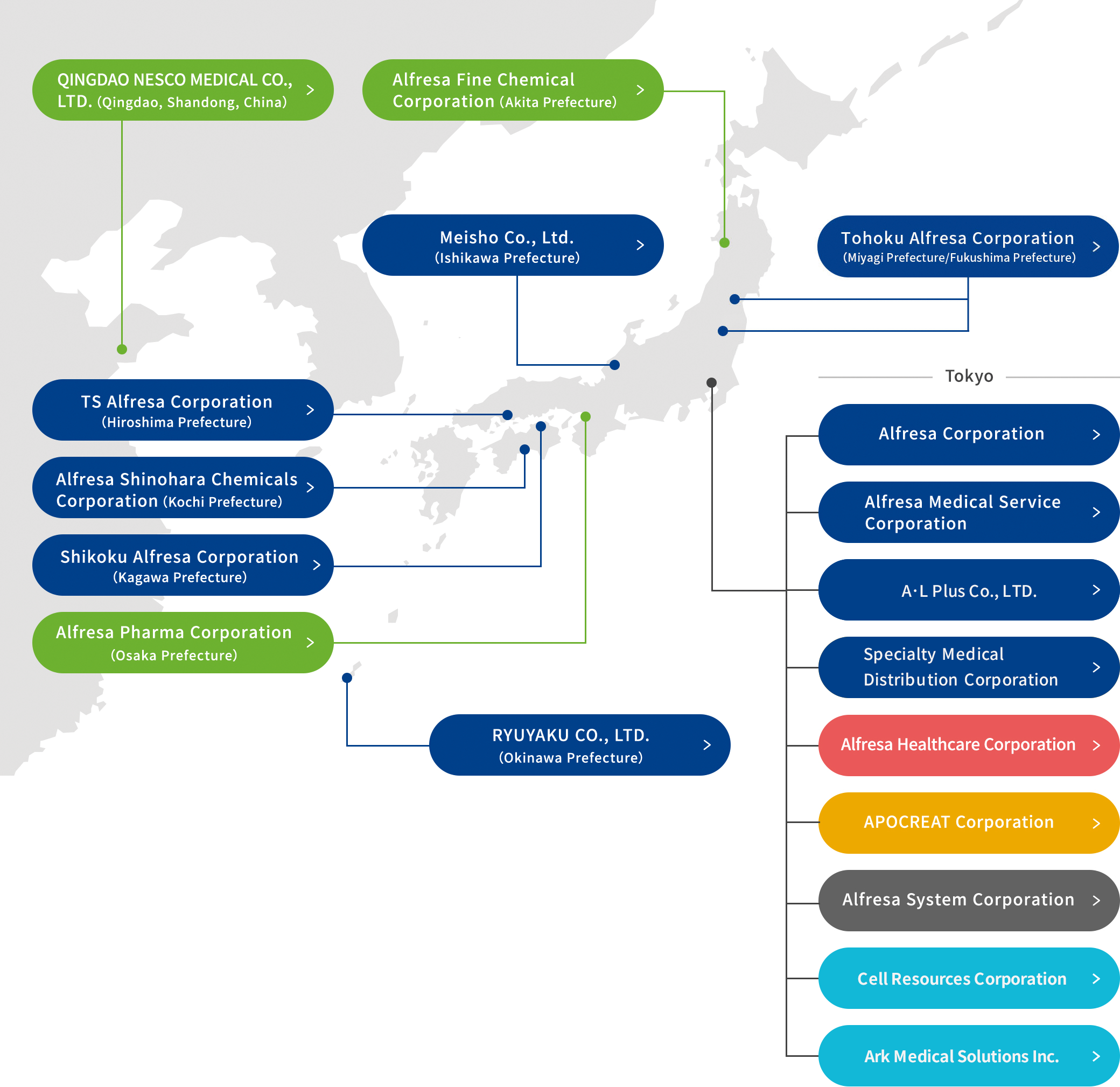 We aim to become a Healthcare Consortium that provides products and services in every health-related field. To that end, we strive to be a corporate group that is a close partner in people's life journeys, capable of displaying its manufacturing, wholesaling, distribution, family pharmacy, and information provision functions to the fullest.